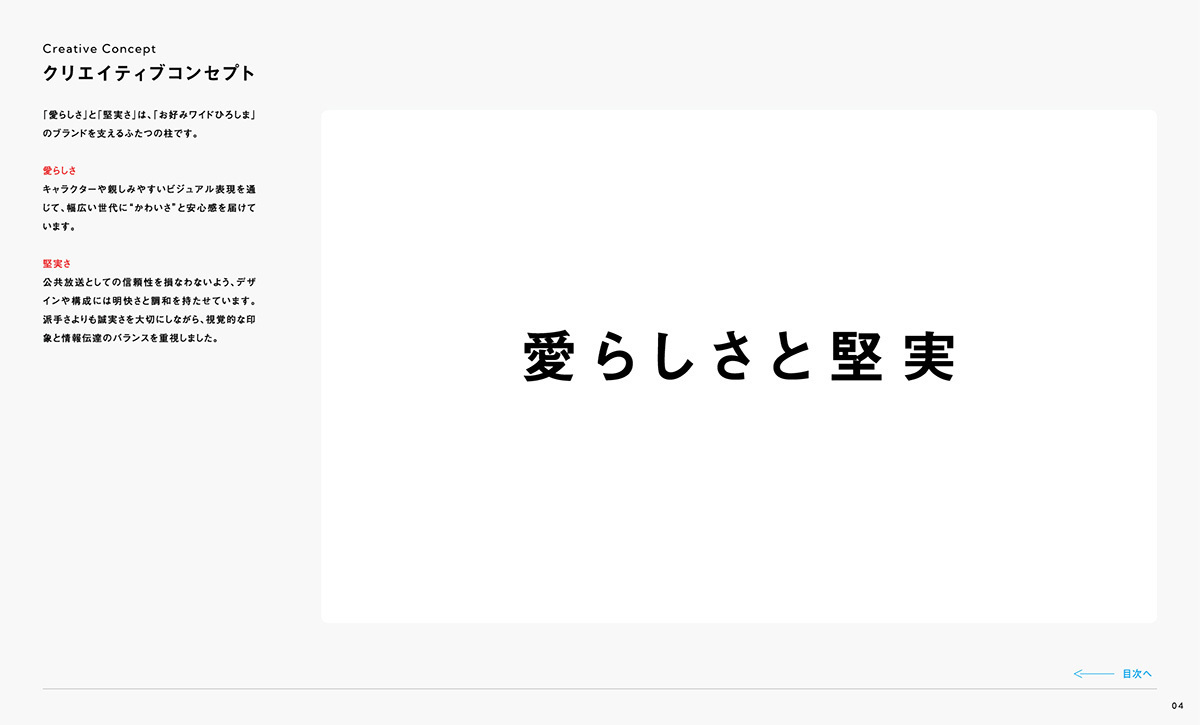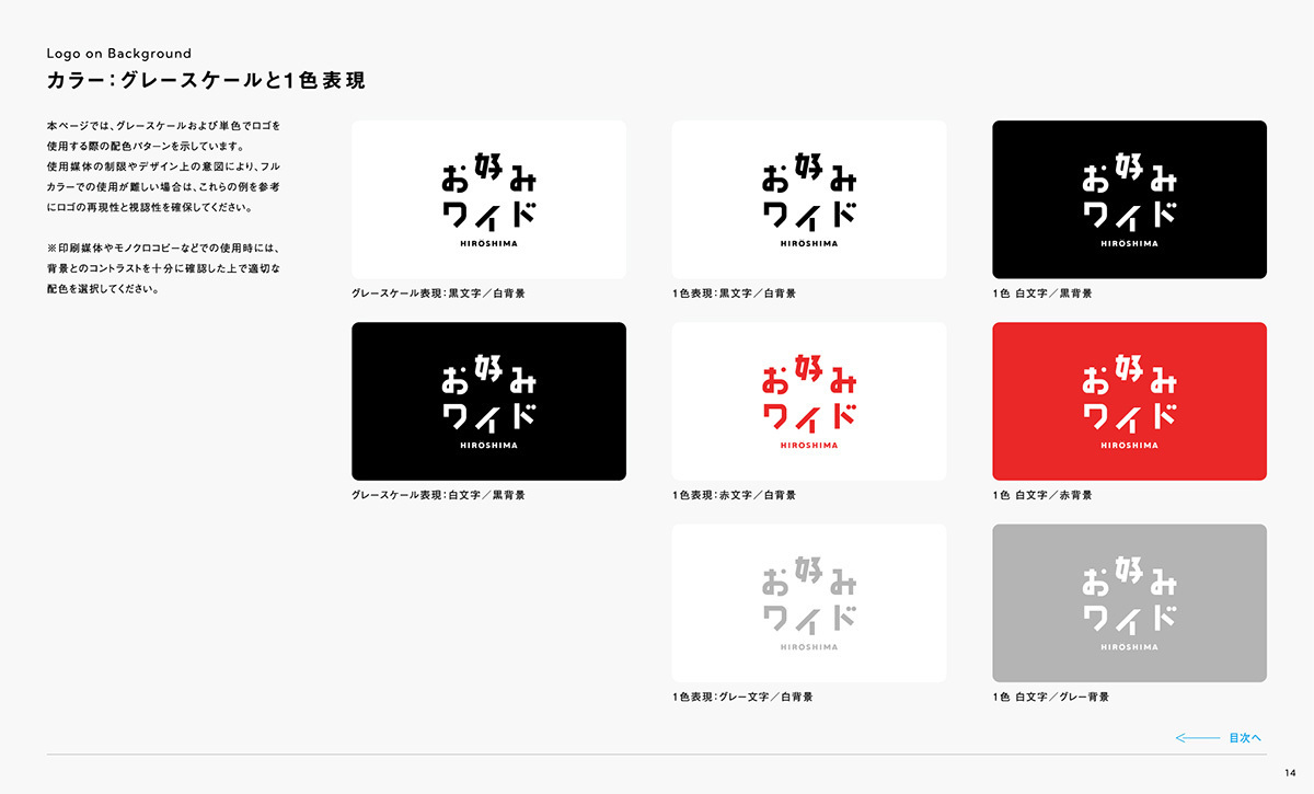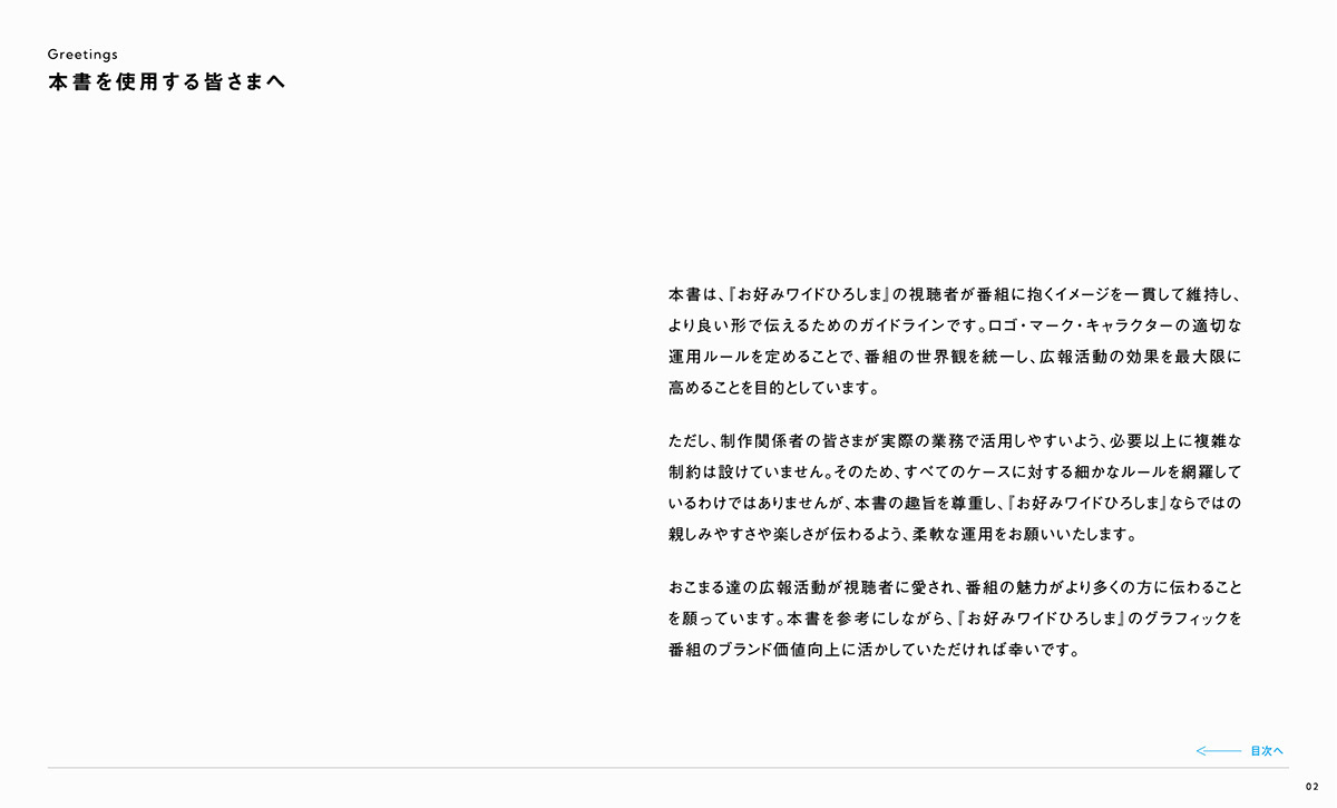 『お好みワイドひろしま』のブランドを正しく伝えていくために、ロゴやカラー、キャラクターなどの使用ルールをまとめています。一貫性を持って運用することで、番組全体の信頼性と親しみやすさを守り続けていきます。