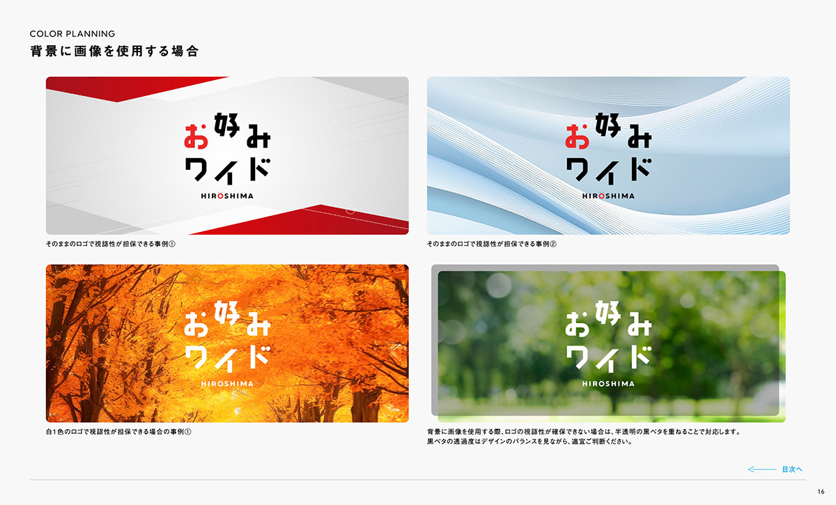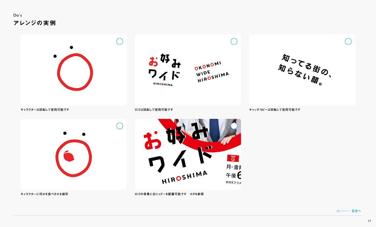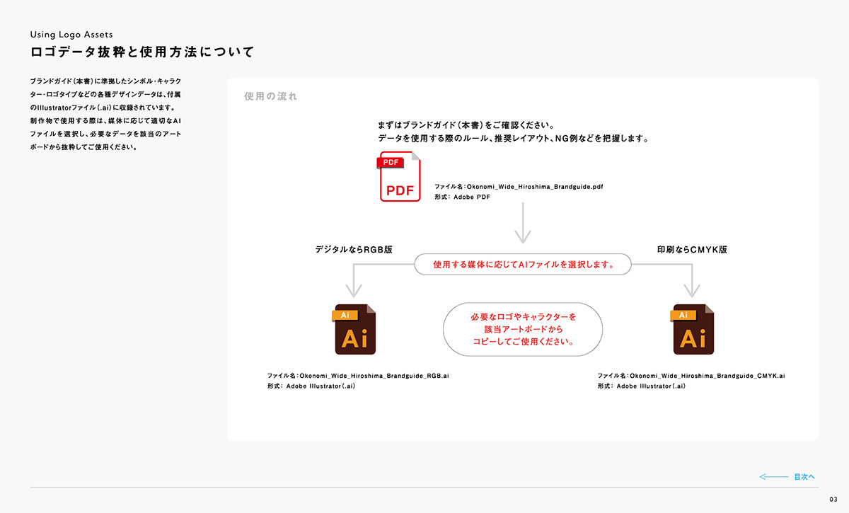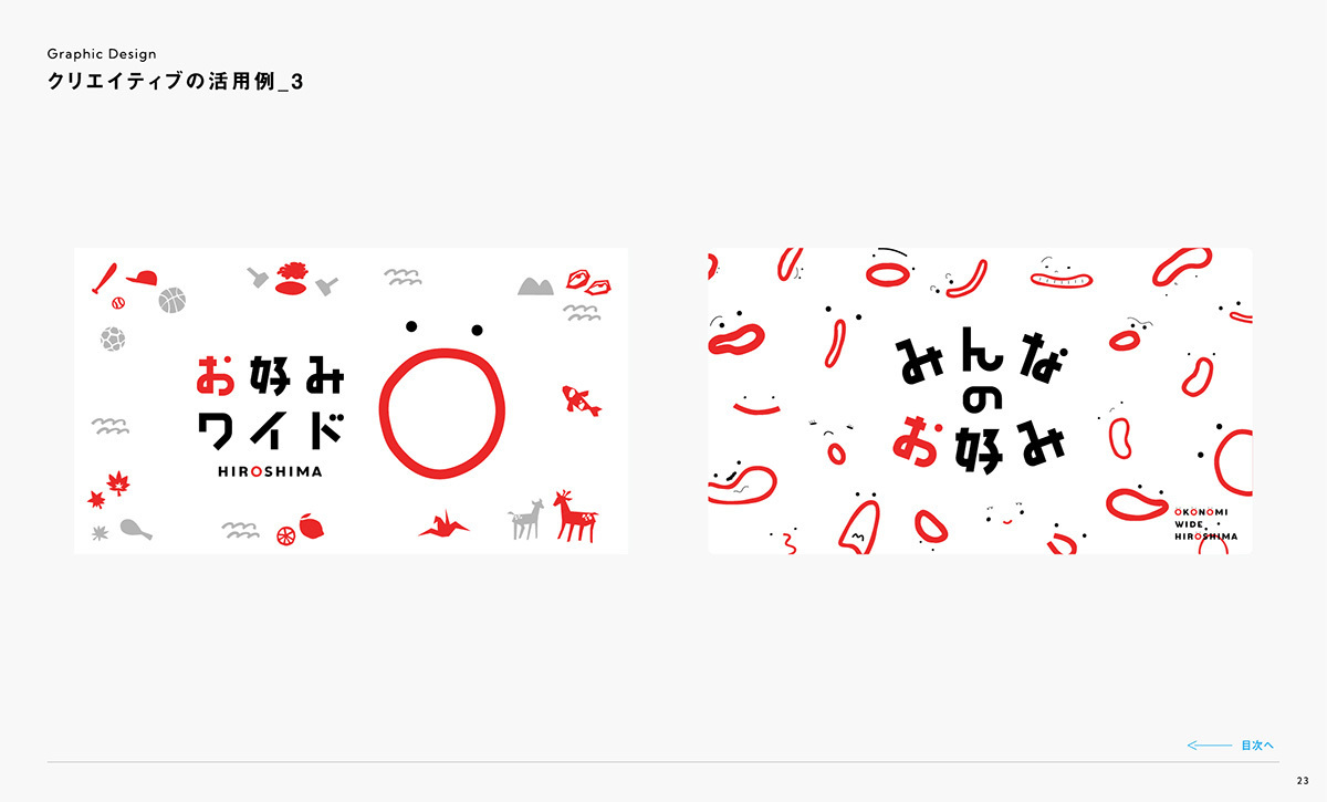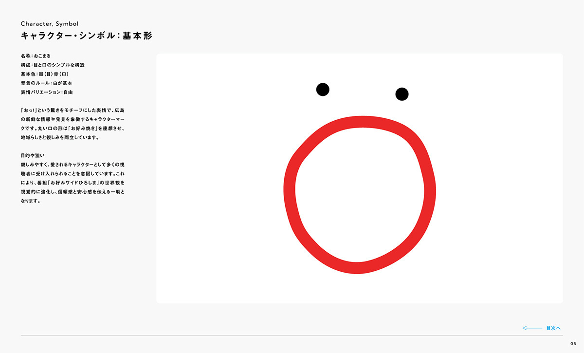 『お好みワイドひろしま』のブランドを正しく伝えていくために、ロゴやカラー、キャラクターなどの使用ルールをまとめています。一貫性を持って運用することで、番組全体の信頼性と親しみやすさを守り続けていきます。